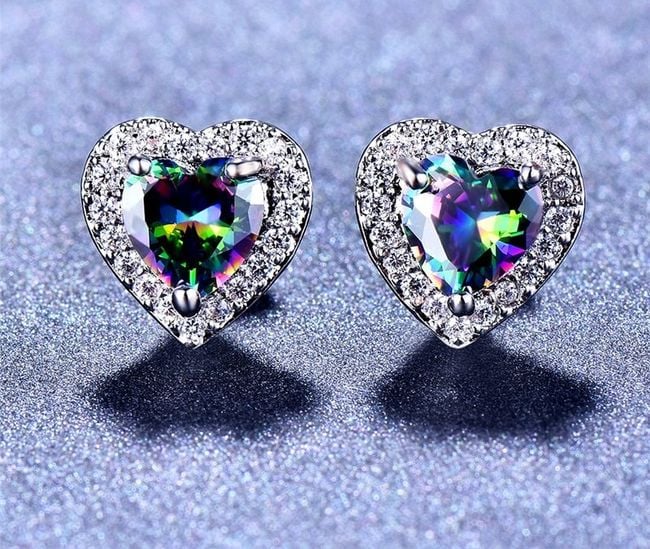 Pendientes de mujer en forma de corazón con una piedra de colores.