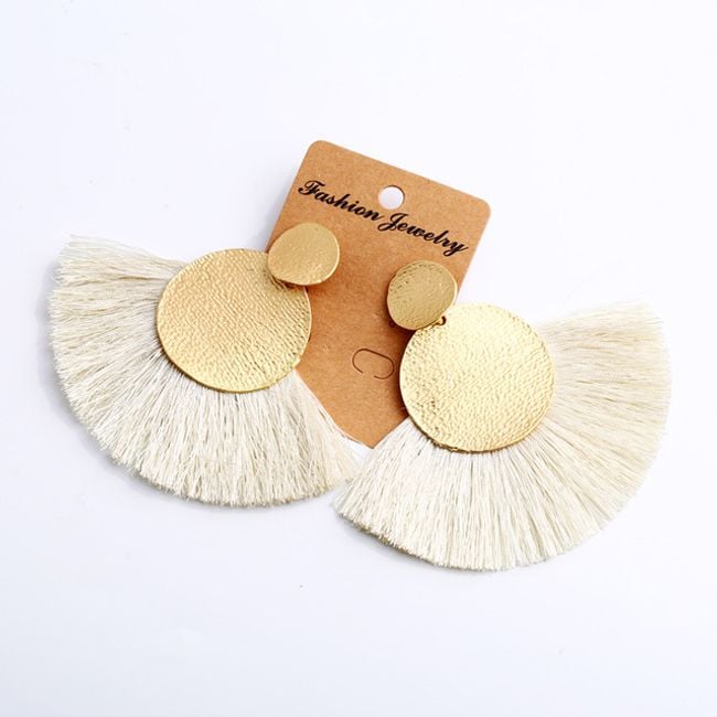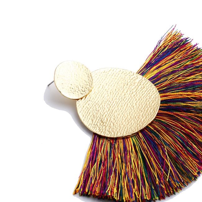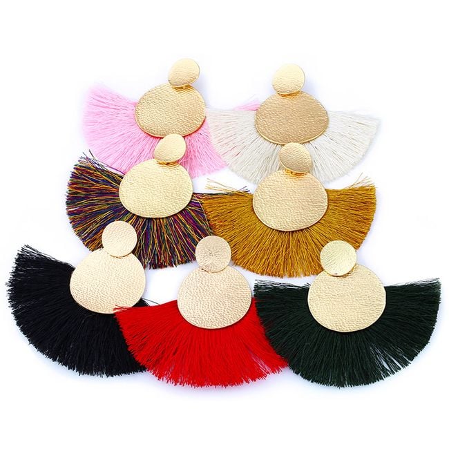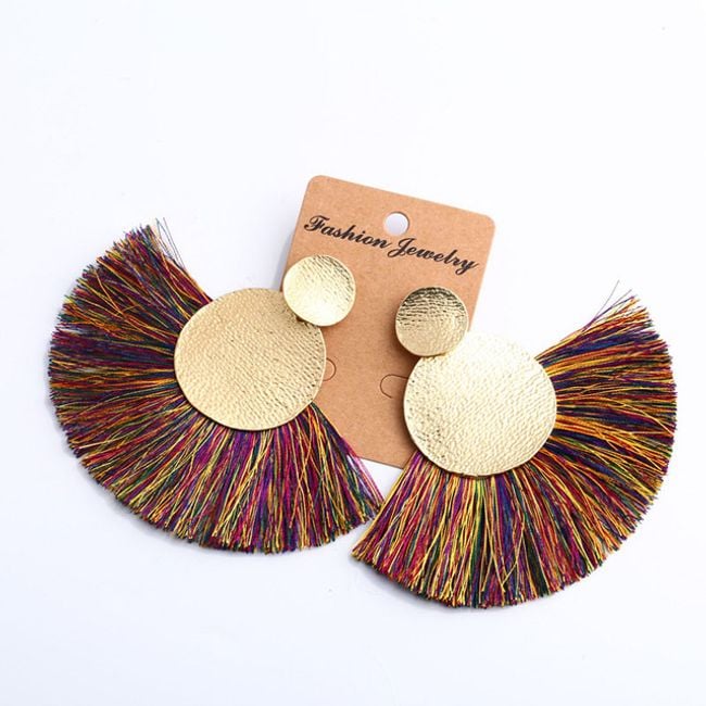 Los pendientes están adornados con flecos y son adecuados para casi todo.