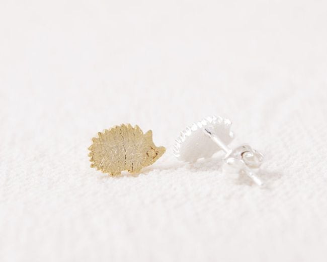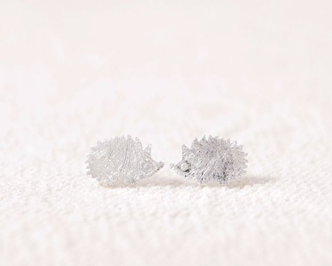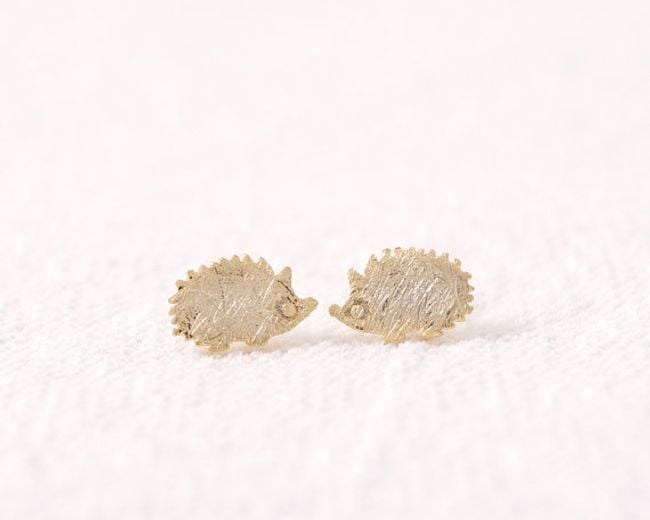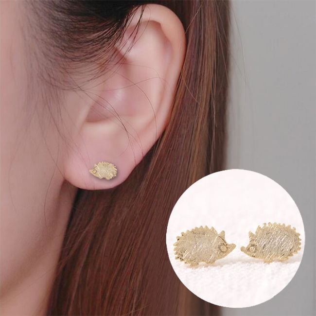 Los pendientes son pequeños y tienen forma de erizo.