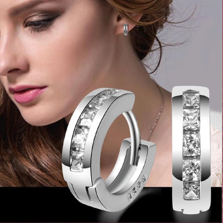 Pendientes redondos para mujer. Diseño lujoso con pequeñas piedras discretas.