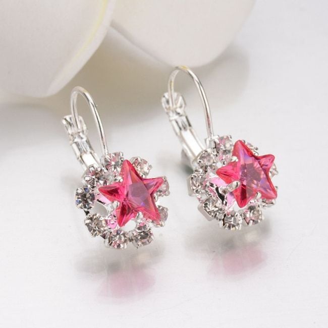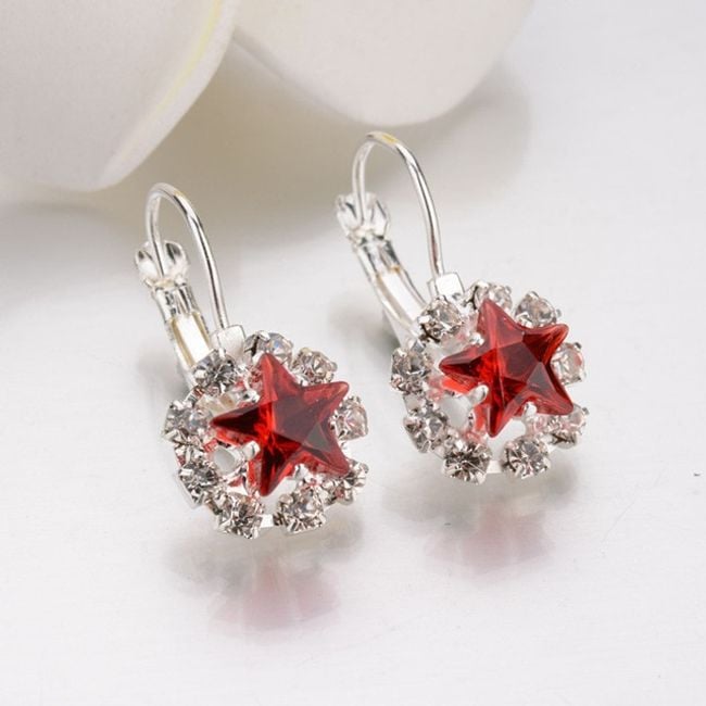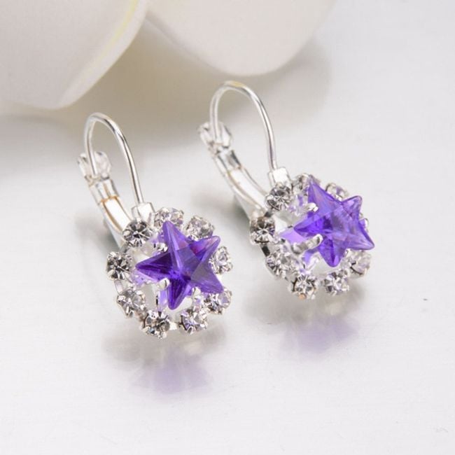 Delicados pendientes de mujer con estrellitas y piedras en 6 variantes de color.