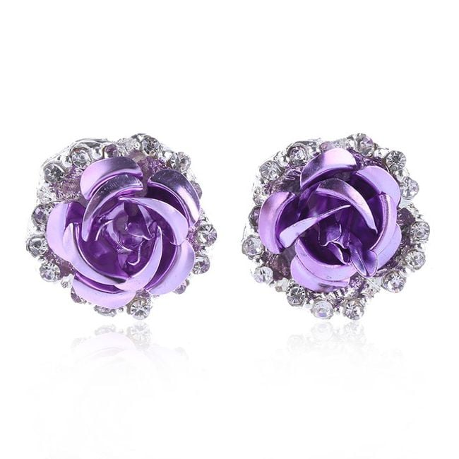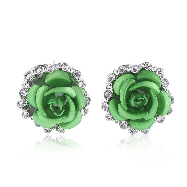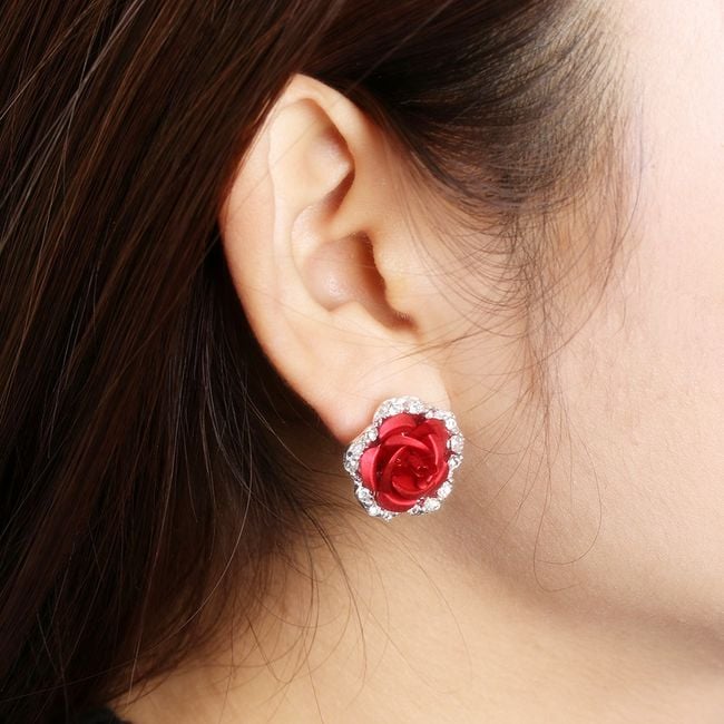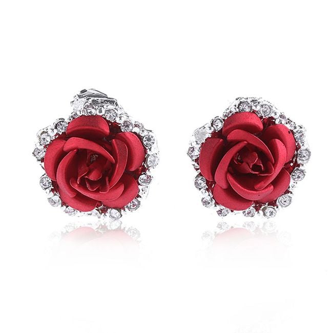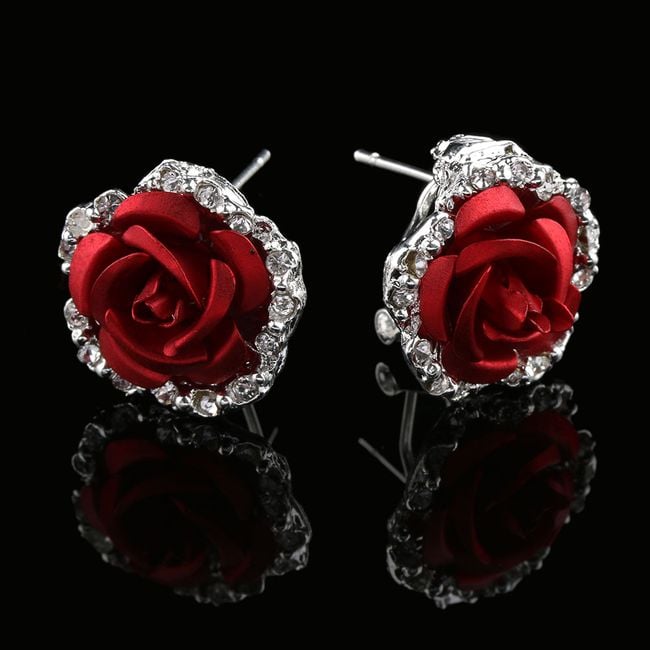 Pendientes románticos para mujer en forma de rosas con piedras.