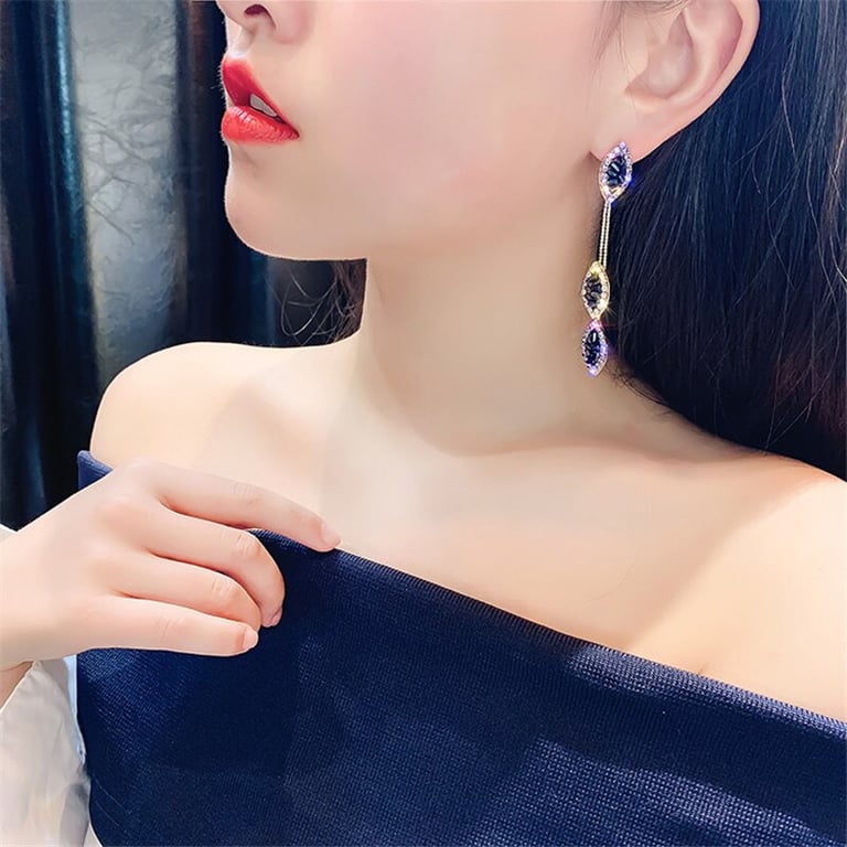 Pendientes de mujer. Decorados con discretas piedras blancas y piedras moradas más grandes.