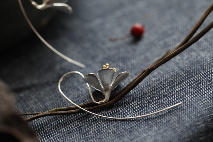 Pendientes de plata colgantes de moda para mujer con flores Nina