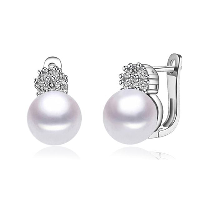 Pendientes elegantes para mujer con perlas artificiales y piedras en dos variantes de color.