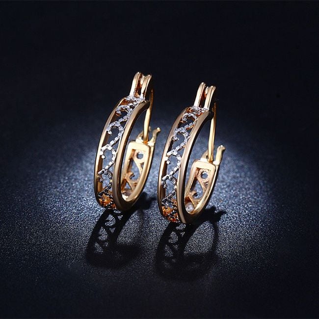 Pendientes de mujer en forma de aros decorados en acabado dorado y plateado.