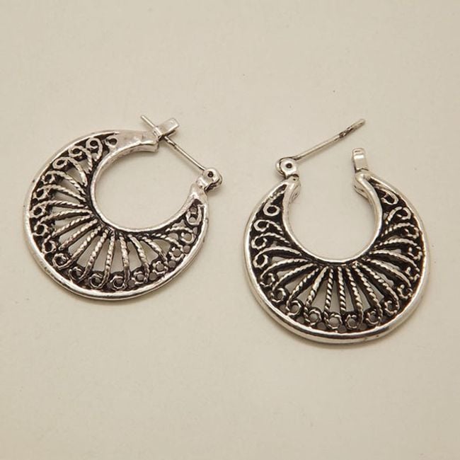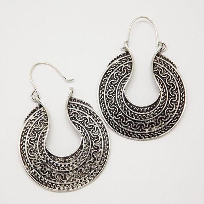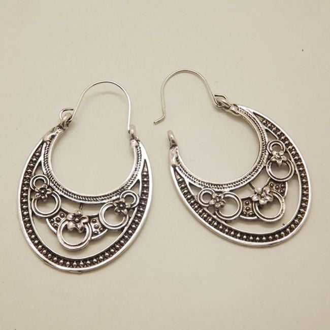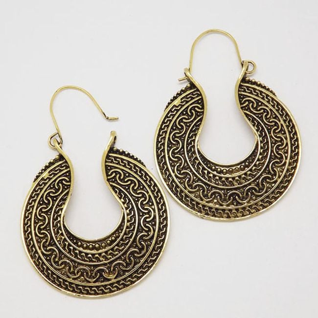 Estos hermosos pendientes orientales complementarán tu atuendo diario. Los pendientes tienen forma de un gran arco, son huecos o planos por dentro, por lo que no pesan en la oreja. La mayoría de los pendientes tienen cierre de presión, algunos tienen cierre de tuercas (visible en las imágenes).