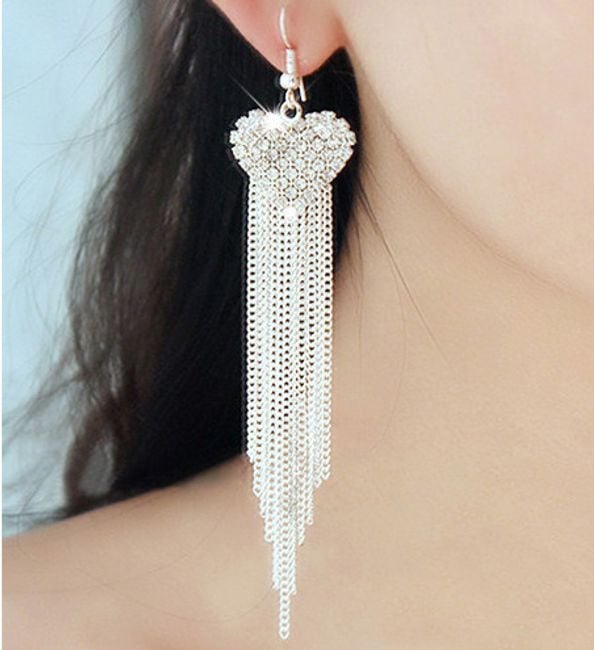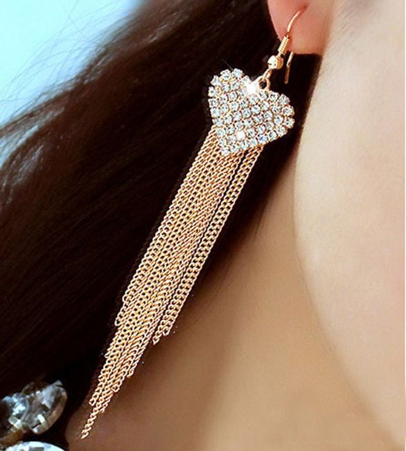 Los pendientes son de un diseño más largo y son adecuados para peinados recogidos en eventos sociales.