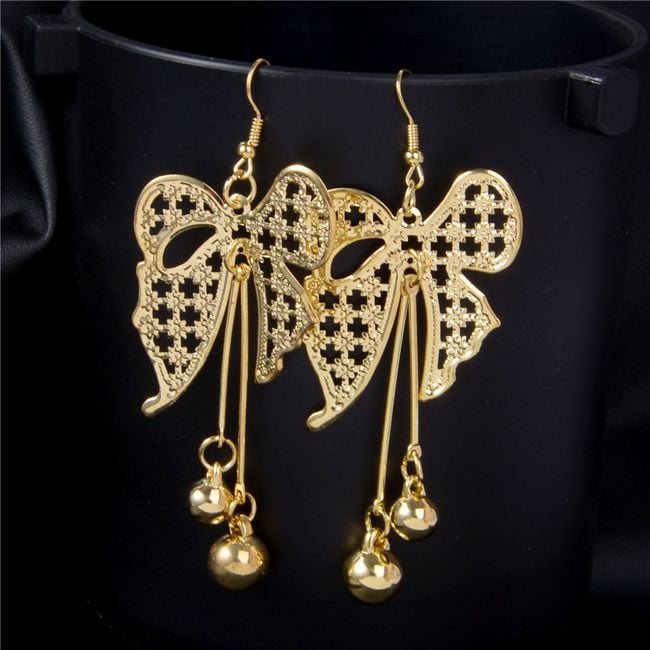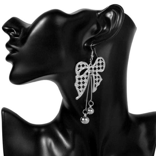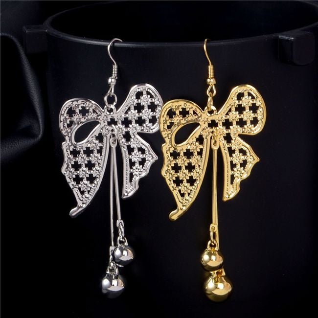 Estos pendientes de bisutería están compuestos por un gran lazo y colgantes suspendidos. Tienes dos colores para elegir.