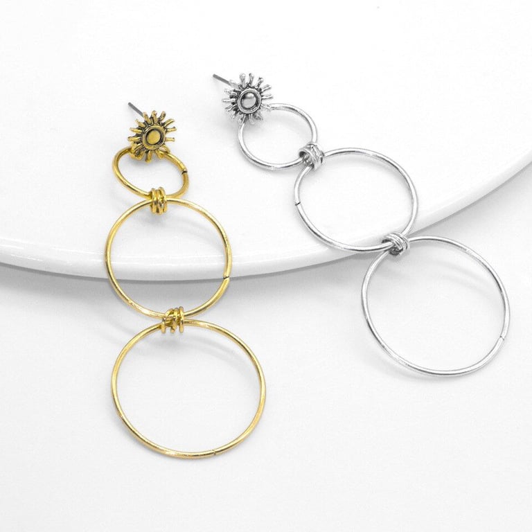 Pendientes modernos de aro que aumentan gradualmente en tamaño.