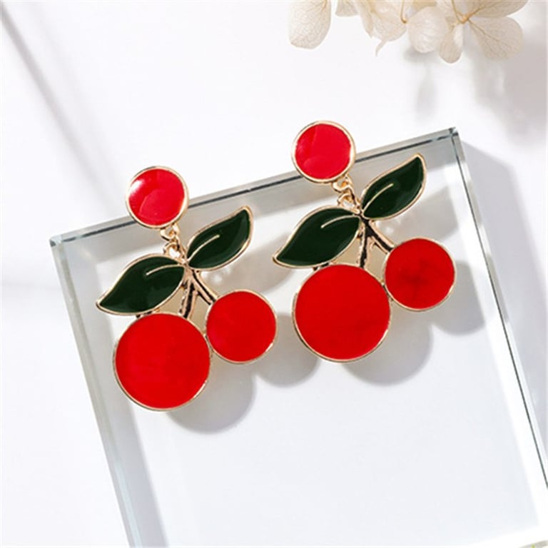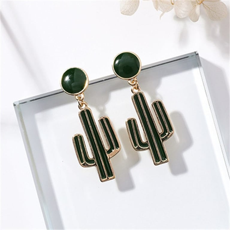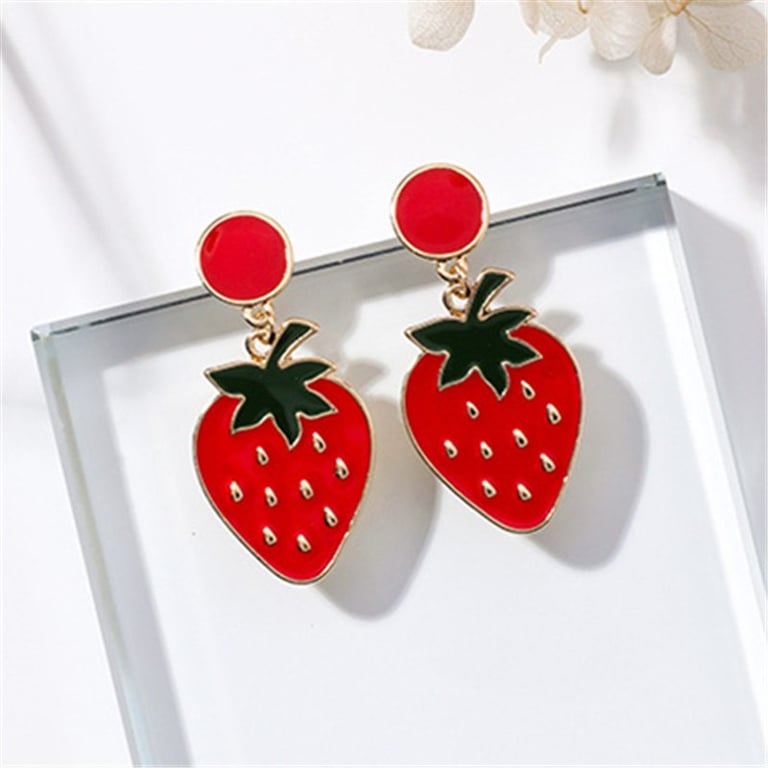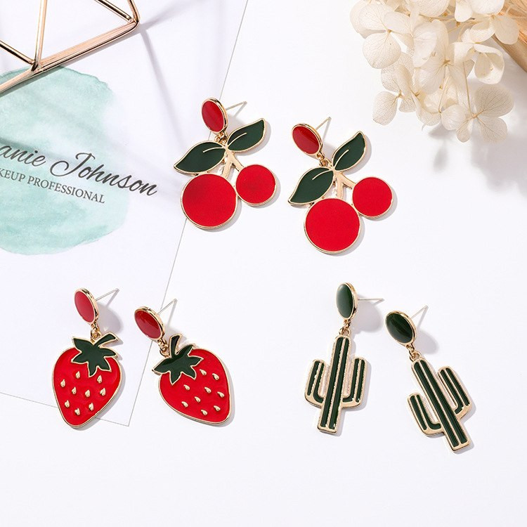 Pendientes de aro para mujer en color dorado. Disponible en tres diseños: cactus, fresa y cereza.