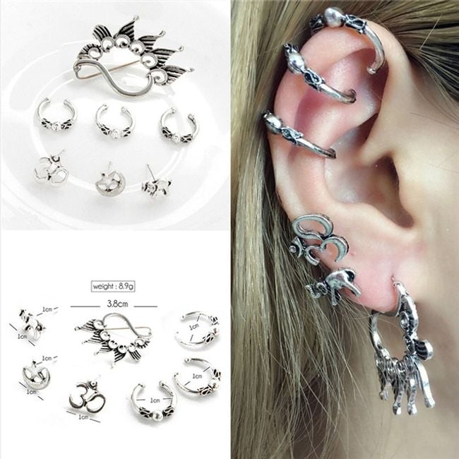 El conjunto incluye siete pendientes diferentes para uso diario.