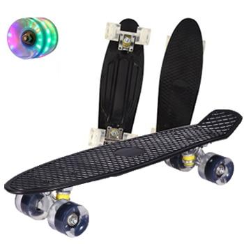Pennyboard estiloso con ruedas luminosas en colores arcoíris. Adecuado para niños y adultos. El pennyboard es resistente al agua y está hecho de material antideslizante. Más colores disponibles.