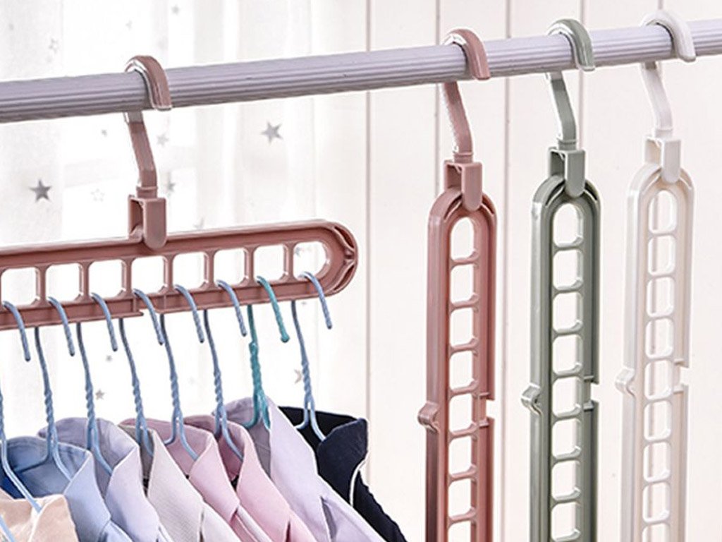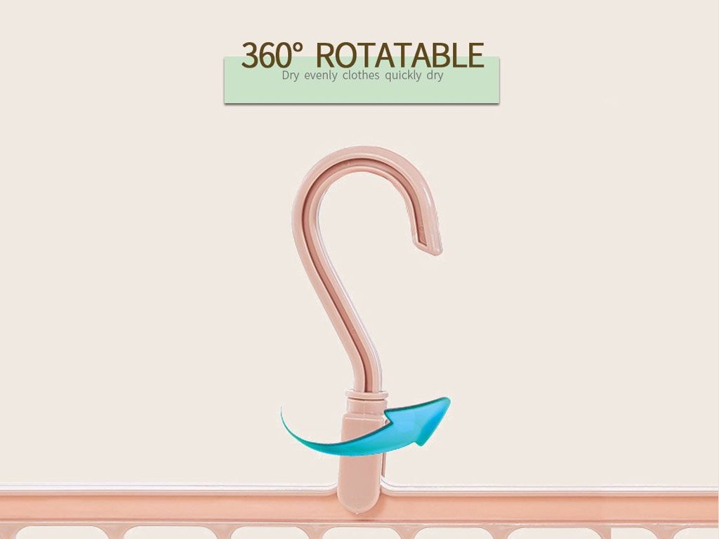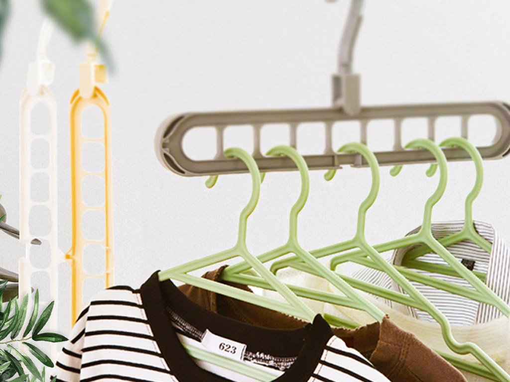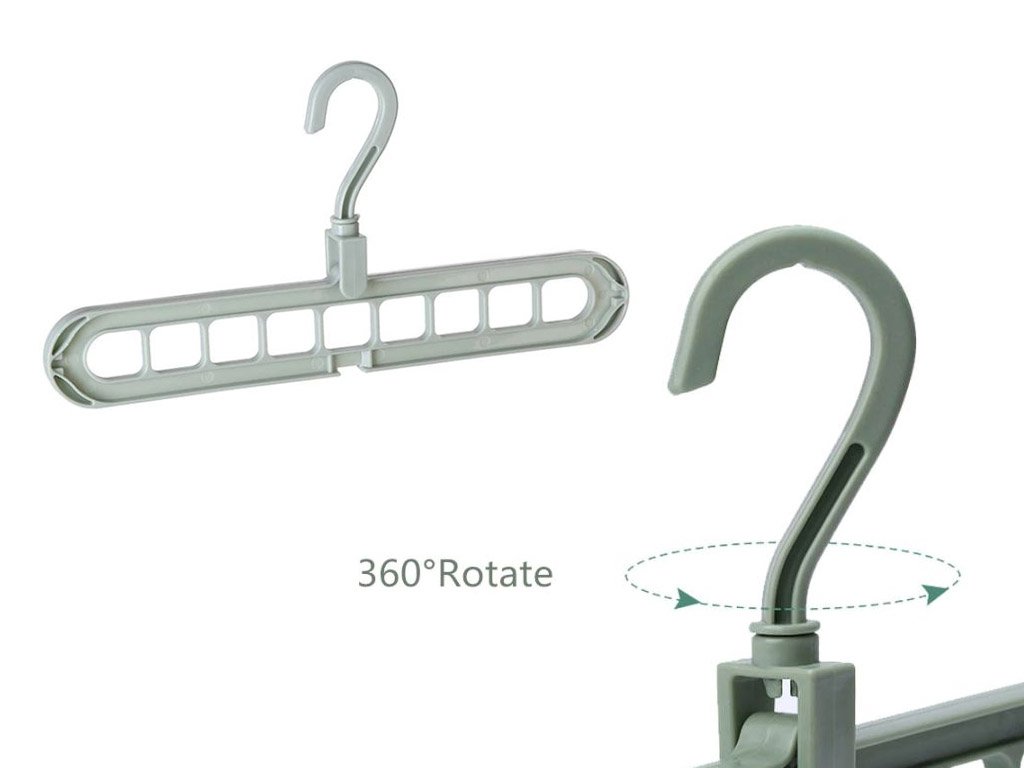 ¿Luchas en el armario con la falta de espacio para vestidos, camisetas o camisas? El colgador ahorrador puede contener hasta 9 perchas adicionales y luego puedes plegarlo de la posición horizontal a la vertical. El colgador está inteligentemente diseñado y se puede girar de forma flexible 360 grados.