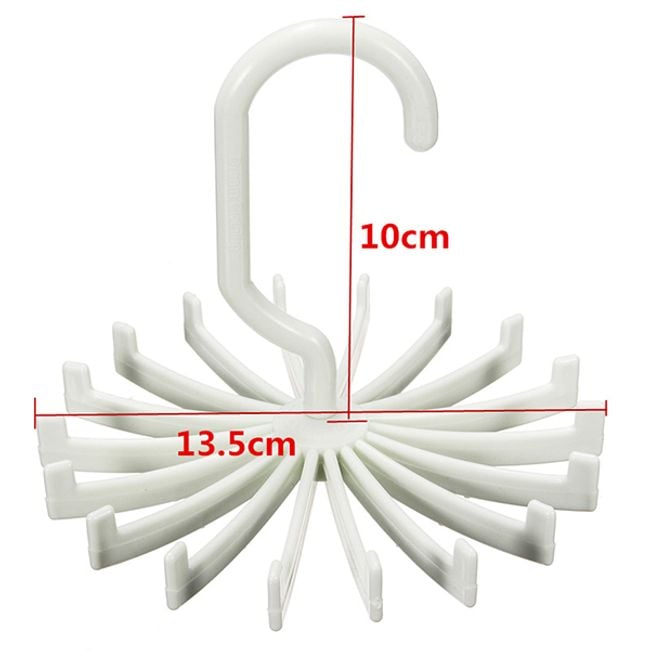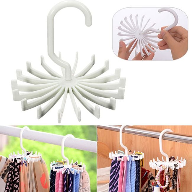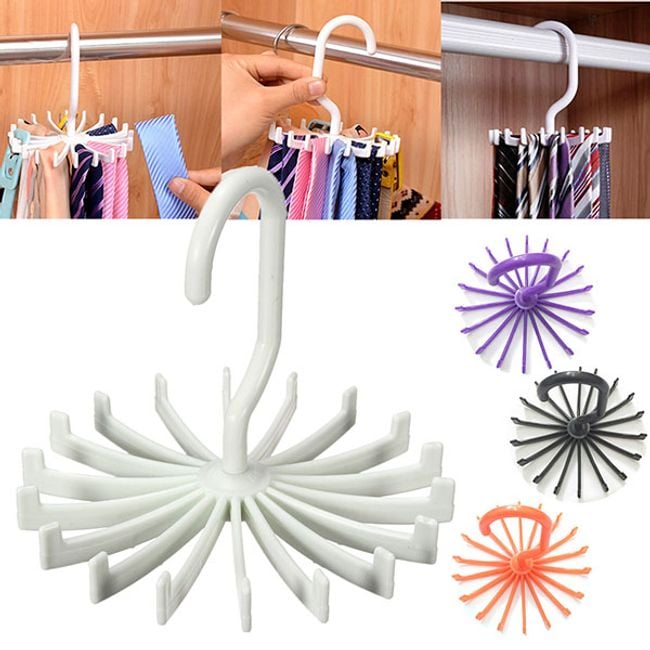 Un gran perchero de plástico que es giratorio. Es ideal para pañuelos, corbatas, pero también para joyas. El producto se envía en un color aleatorio, déjate sorprender.