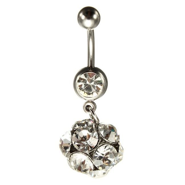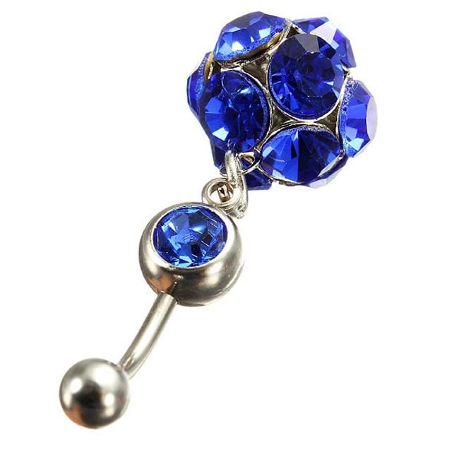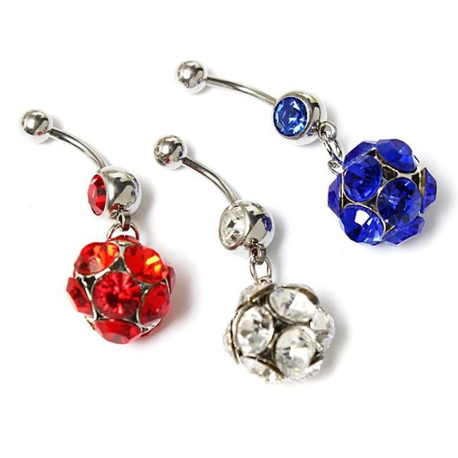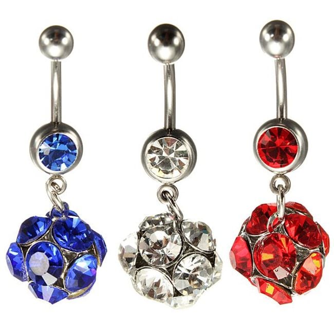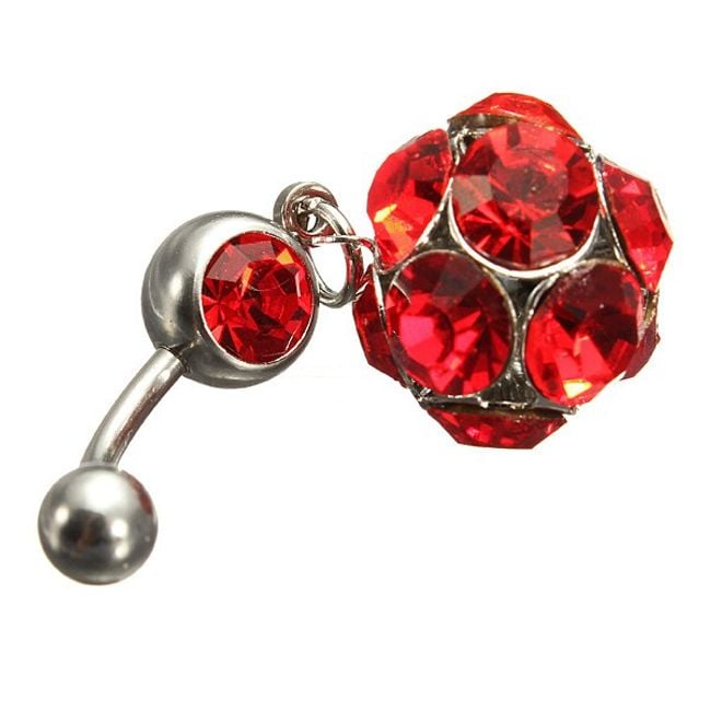 El piercing mágico para el ombligo está disponible en tres colores atractivos. La joya está adornada con piedras de vidrio tallado que brillan hermosamente.
