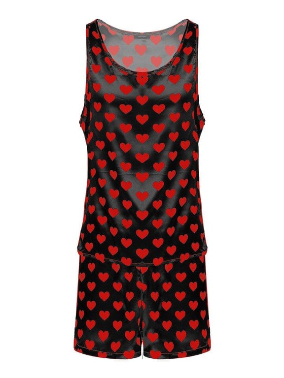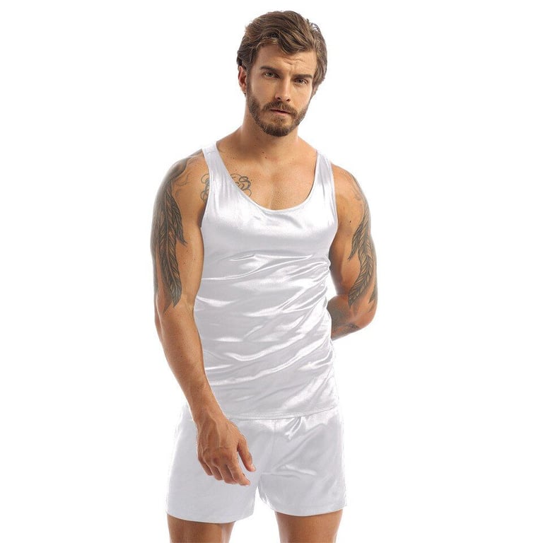 Pijama de satén de dos piezas para hombre – pantalones cortos + camiseta sin mangas