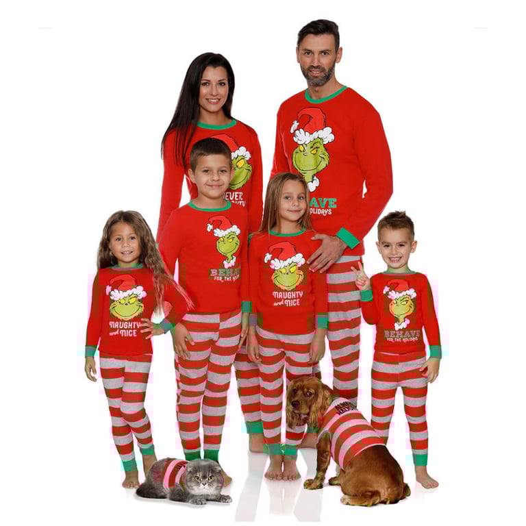 Pijama familiar navideño con divertido estampado de Grinch