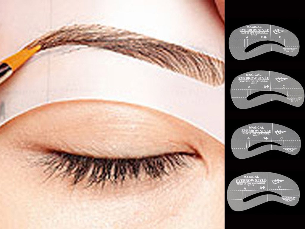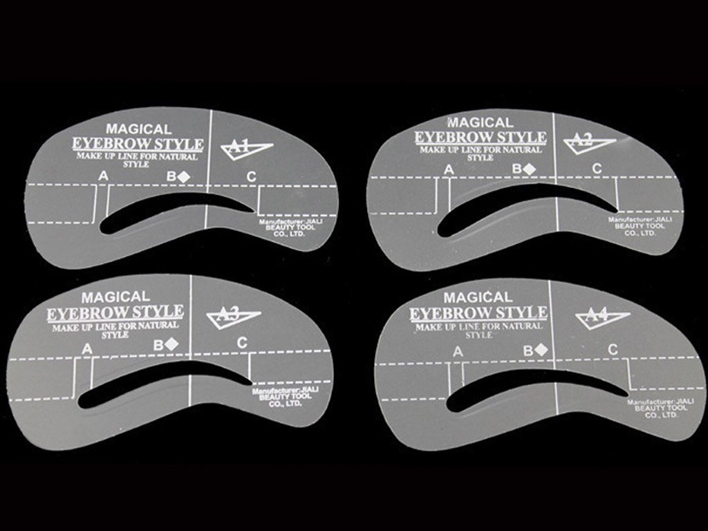 4 plantillas diferentes para resaltar las cejas. Con la plantilla elegida, puedes ajustar las cejas exactamente como necesitas para que la izquierda y la derecha se vean iguales. Son adecuadas para resaltar las cejas con lápiz para cejas, sombras de ojos o henna.