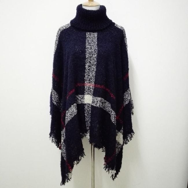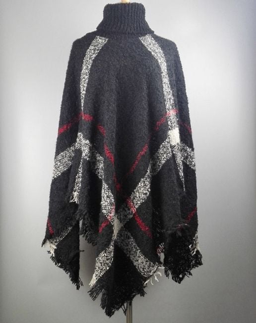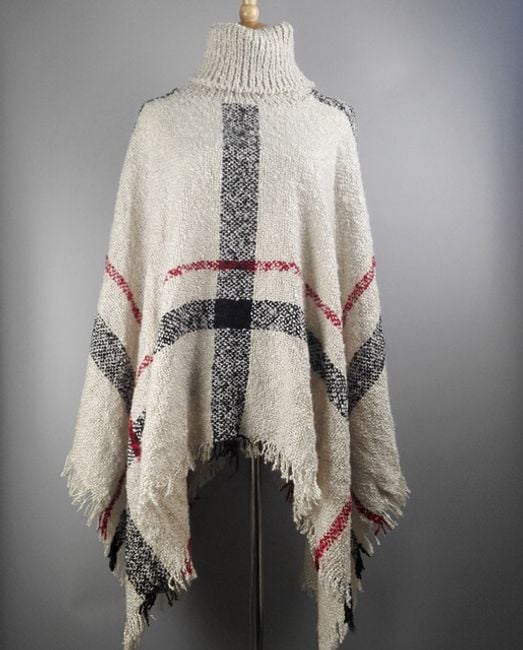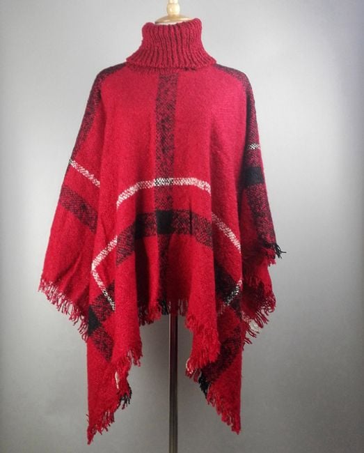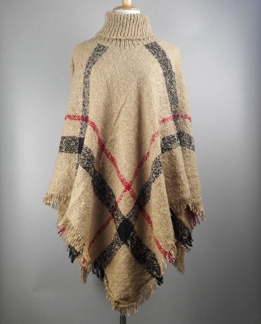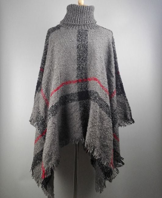 Poncho de cuadros para mujer con cuello alto, que será un gran compañero en los fríos días de otoño.