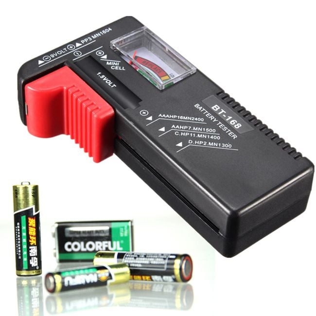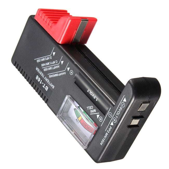 Probador de baterías universal. Verifica rápidamente la capacidad de las baterías. Tiene un tamaño pequeño, por lo que se puede llevar de viaje. Es universal, por lo que es adecuado para muchos tipos de baterías.