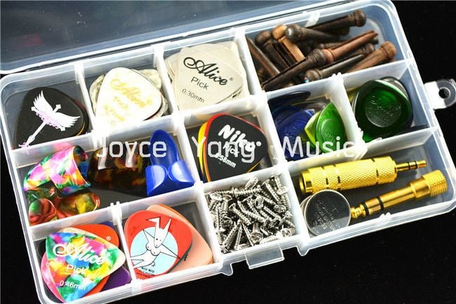 ¡Nunca hay suficientes pua! En el paquete encontrarás 100 piezas de diferentes grosores. Además, el embalaje incluye una caja que sirve como organizador, por lo que puedes clasificar las púas cómodamente a tu gusto, o puede servir para almacenar otras pequeñas cosas. Hay cuatro variantes de color disponibles para el embalaje.