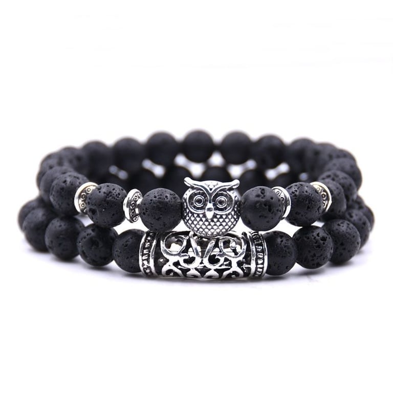 Pulsera con búho de piedras de lava