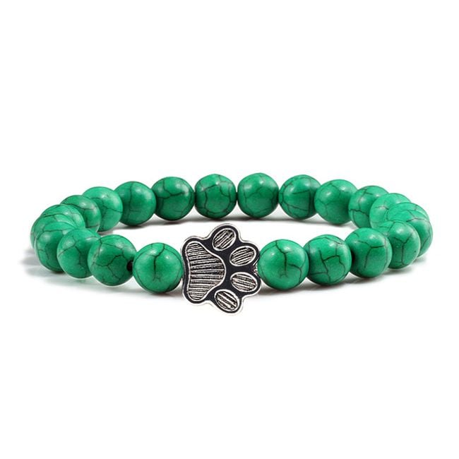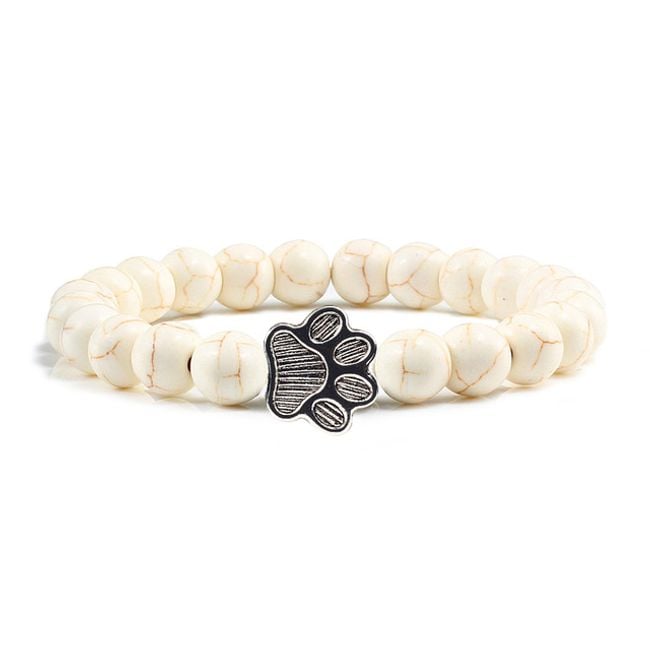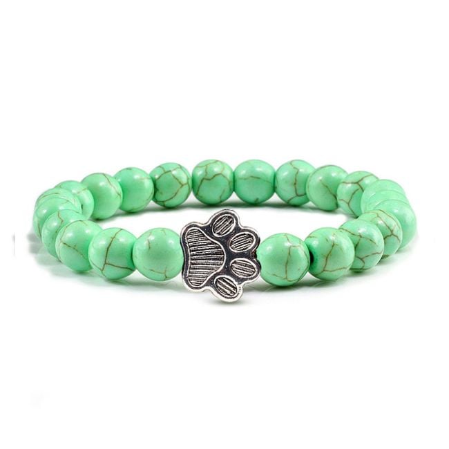 Pulsera para damas para todos los amantes de los animales con piedras naturales y una pata de metal.