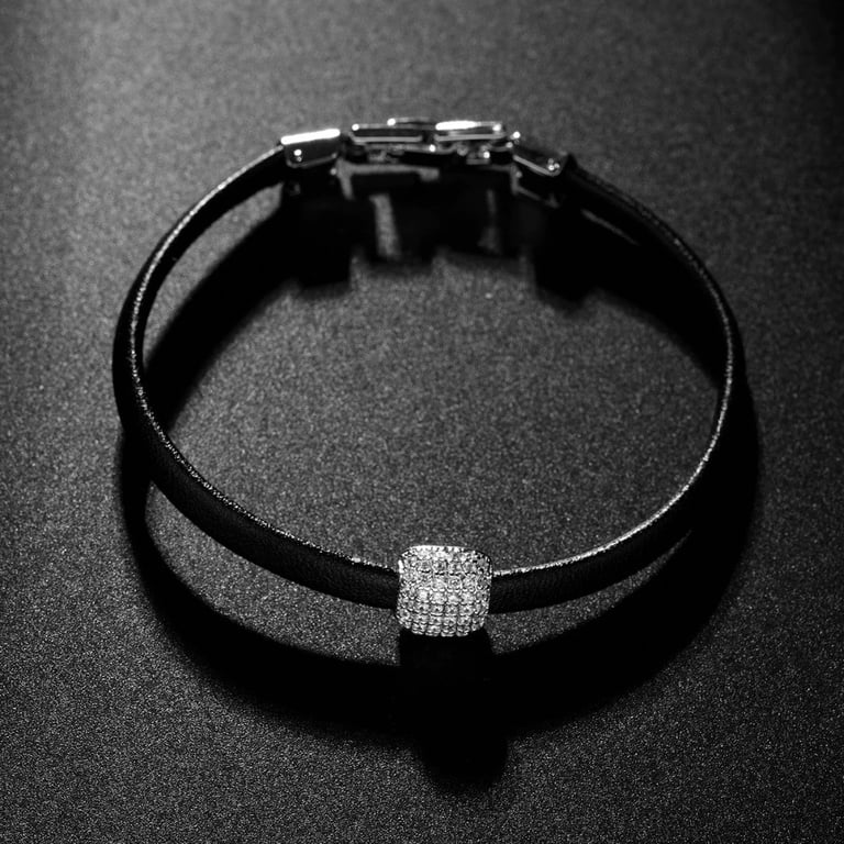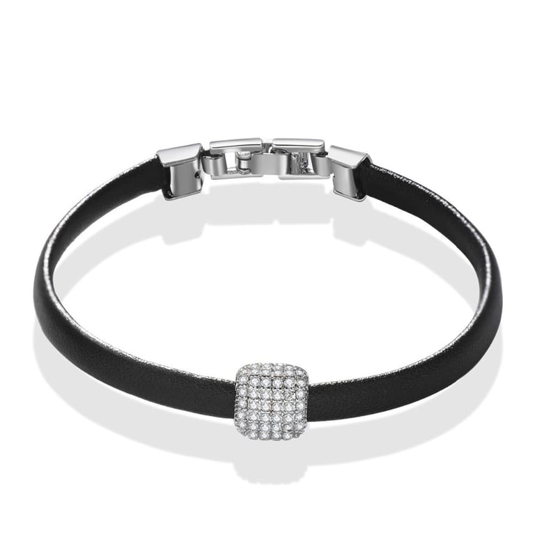 Material: metal de bisutería, cuero sintético, circonio