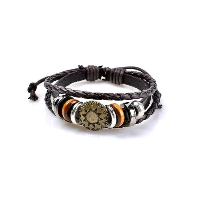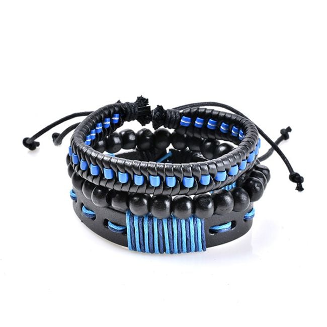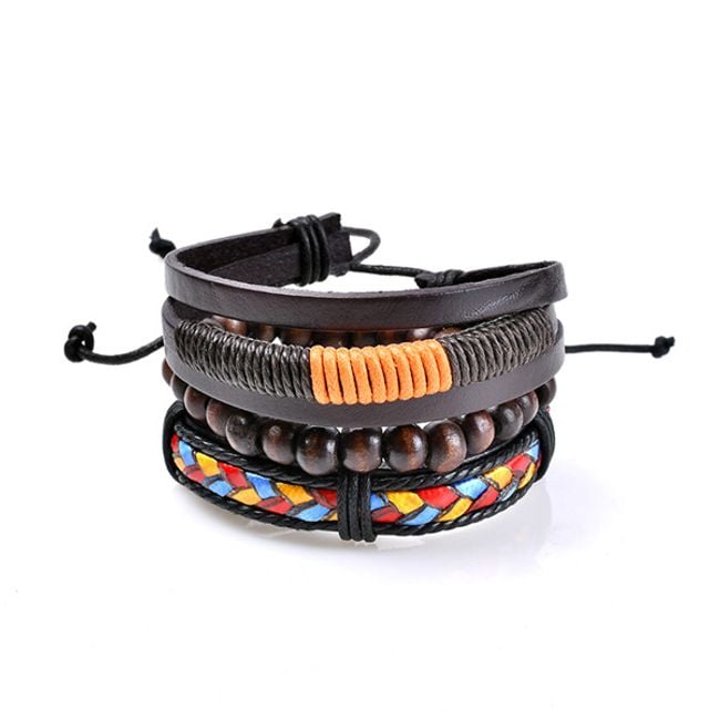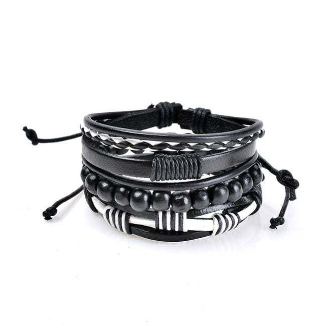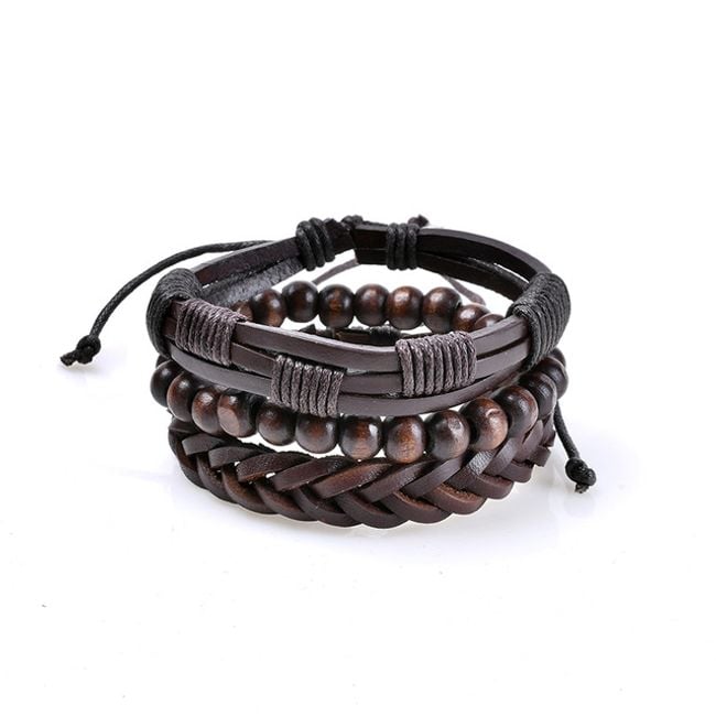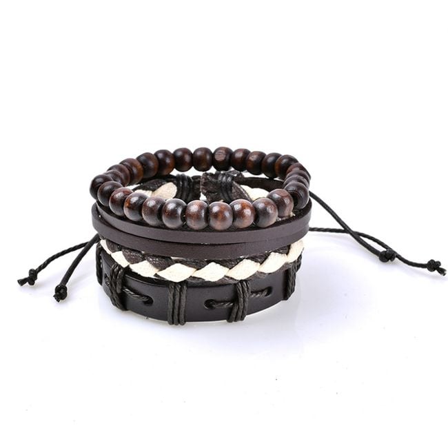 Pulsera de cuero sintético para hombre, decorada con varias cuentas de metal o madera.