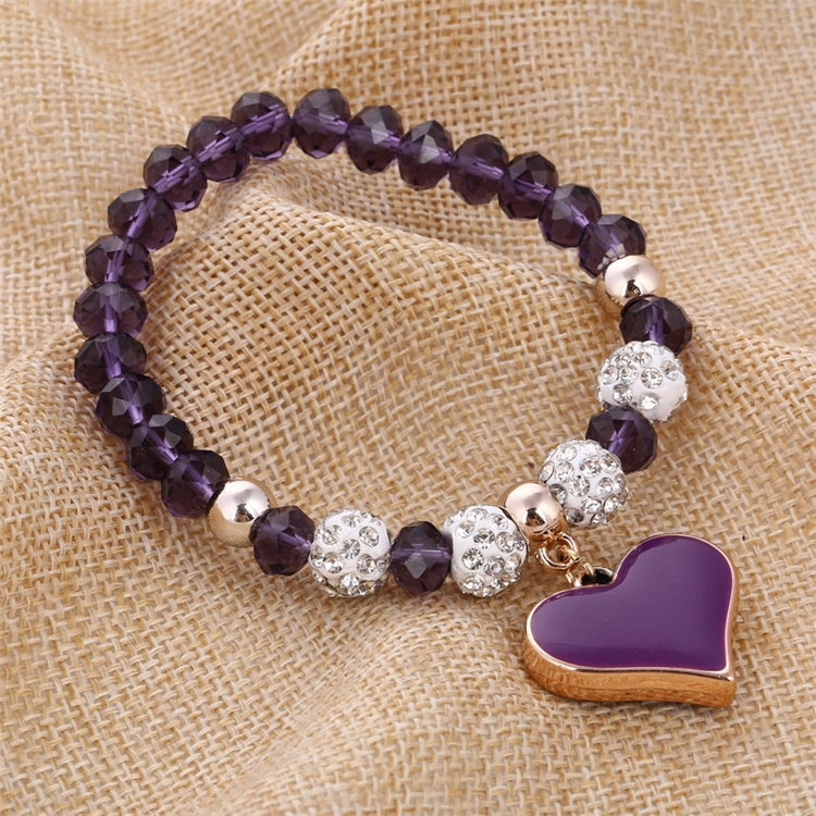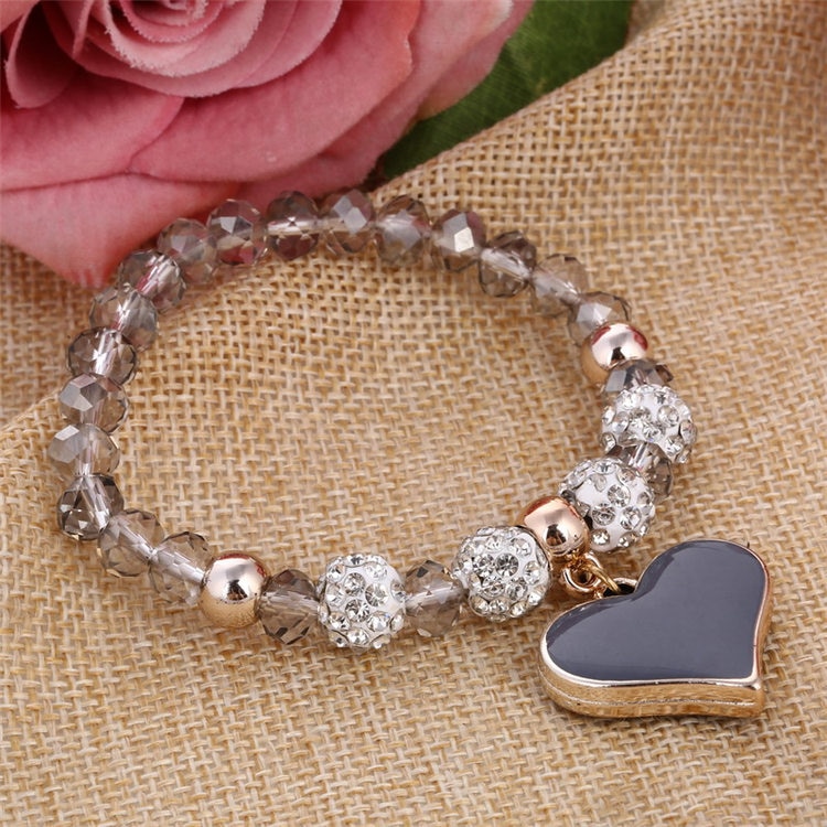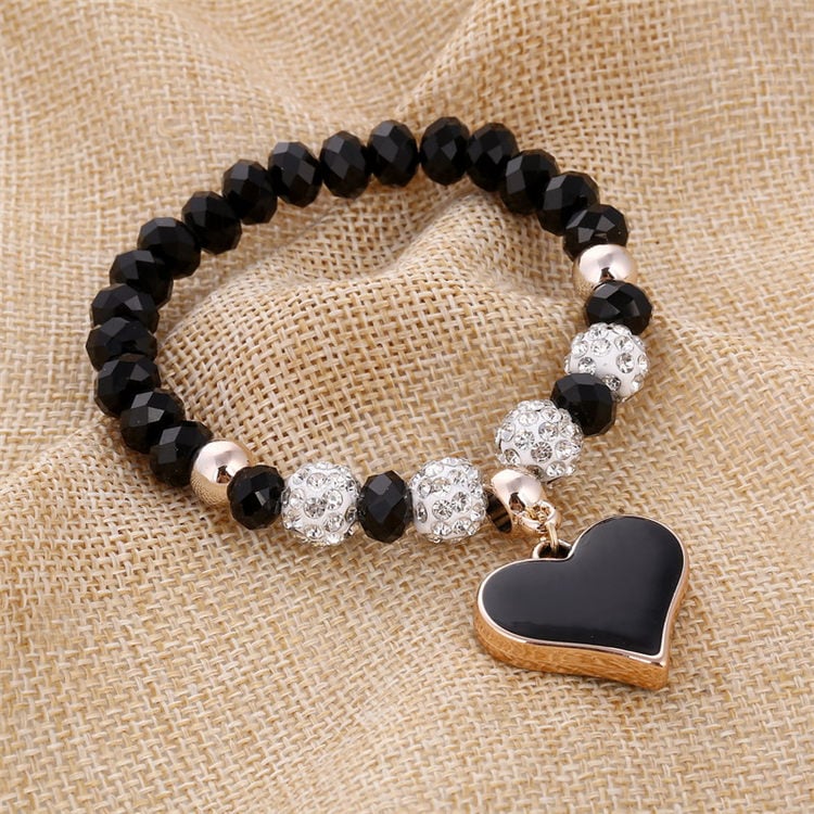 Pulsera de mujer con cuentas de cristal y colgante en forma de corazón
