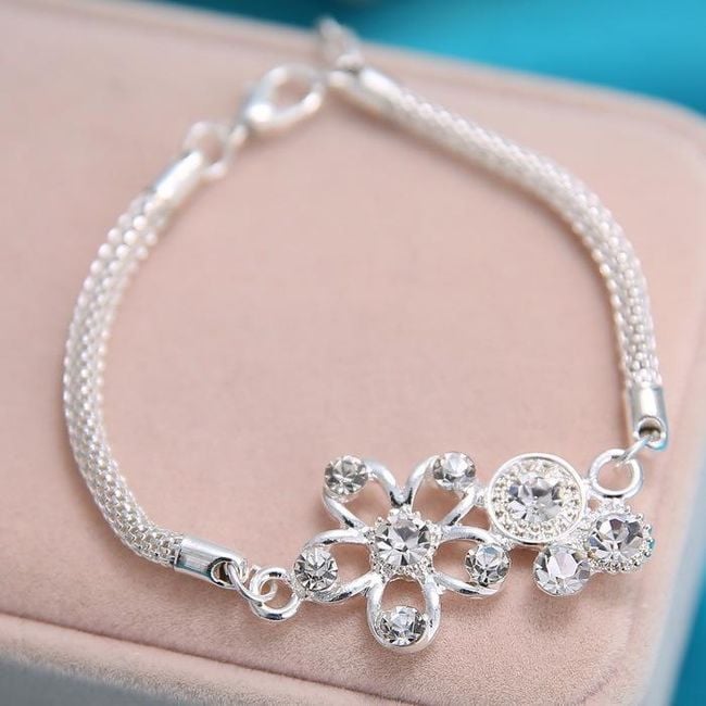 Hermosa pulsera de mujer con una flor y piedras preciosas.