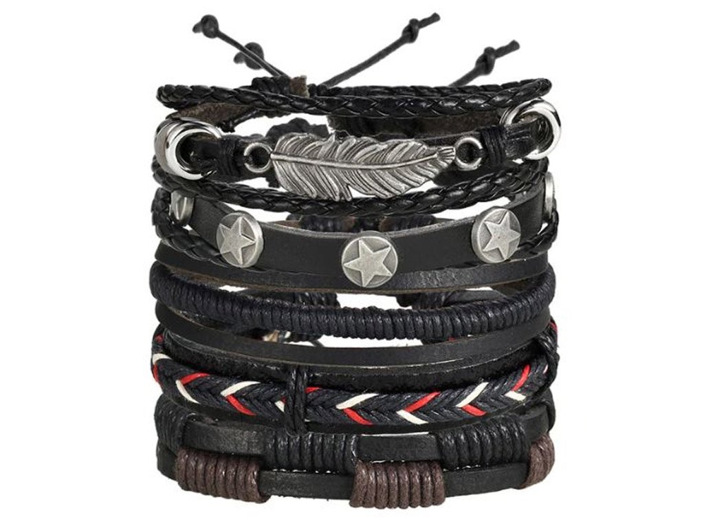 Pulsera de cuero multicapa con signos y simbolismo de tu personalidad. Elige la combinación de las pulseras adecuadas y muéstralas al mundo. Completa tu antebrazo de manera única, con 8 combinaciones disponibles.