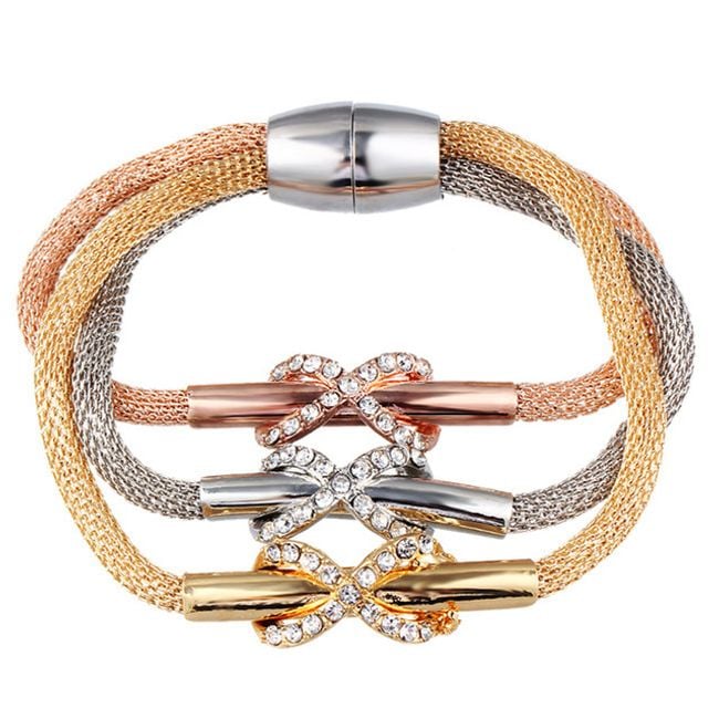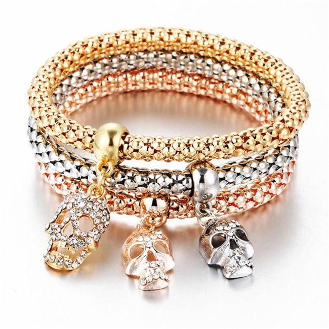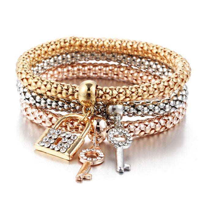 La pulsera está adornada con tres colgantes y es adecuada para el uso diario.