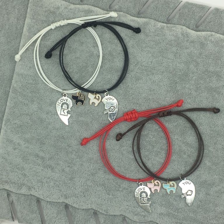 Pulsera de pareja de correa de cuero y colgante con diferentes motivos.