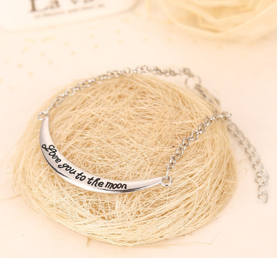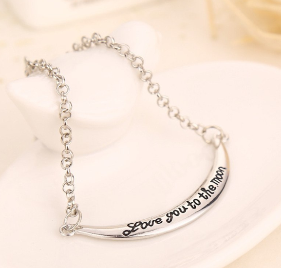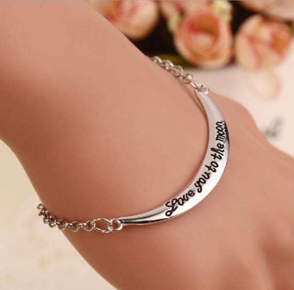 Pulsera decorativa ligera de metal para mujer con inscripción grabada.