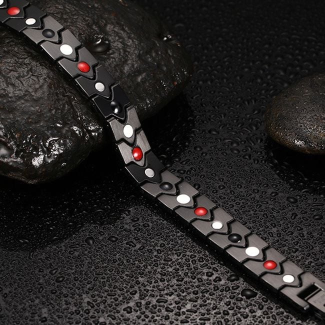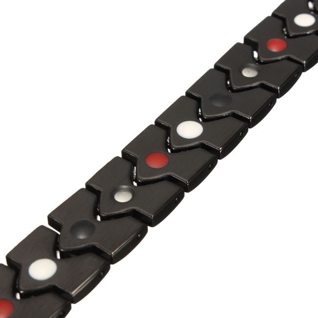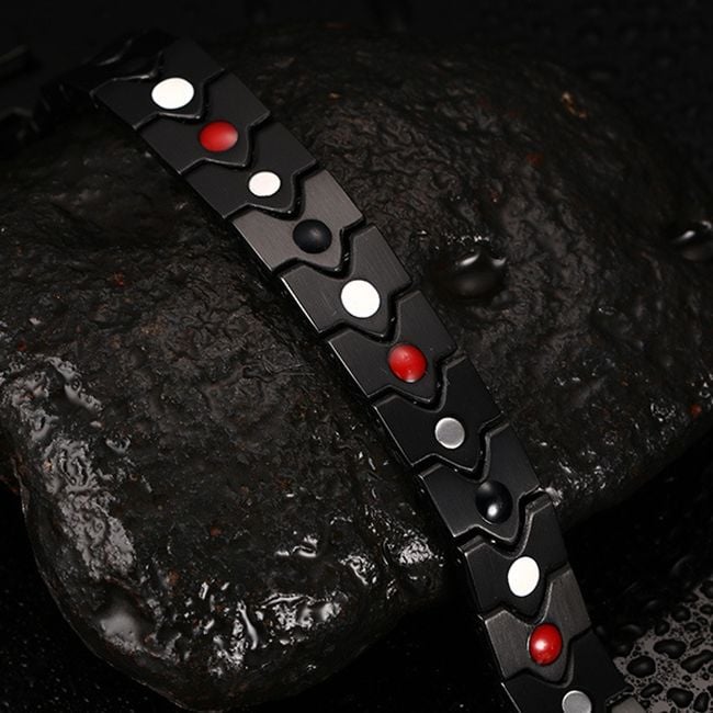 ¡Piensa en los complementos! La guinda del pastel para tu outfit de punk rock es esta pulsera. El color negro combinado con puntos rojos y blancos es perfecto para el uso diario y para conciertos nocturnos.