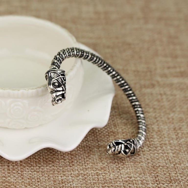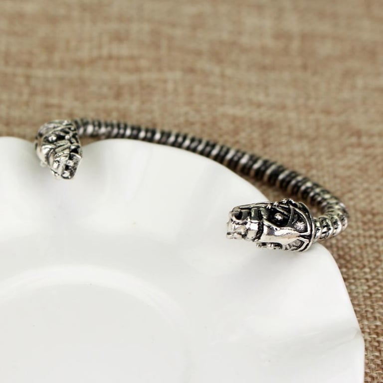 Pulsera vikinga para hombres con el motivo de un lobo de dos cabezas