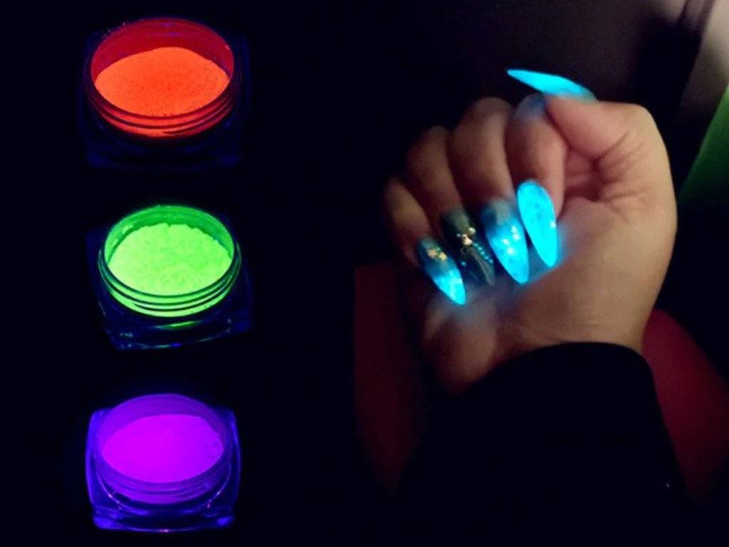 Decoración de purpurina para uñas que brilla en la oscuridad. Simplemente aplique este polvo de purpurina que brilla en la oscuridad en gel o acrílico y deje que sus uñas brillen en la fiesta!