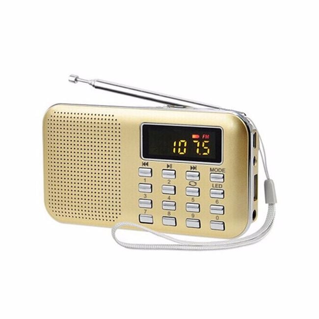 • Funciones: radio, reproducción desde memoria USB, tarjeta micro SD, pantalla LCD, volumen, preajustes de estaciones, linterna, múltiples modos de reproducción de música