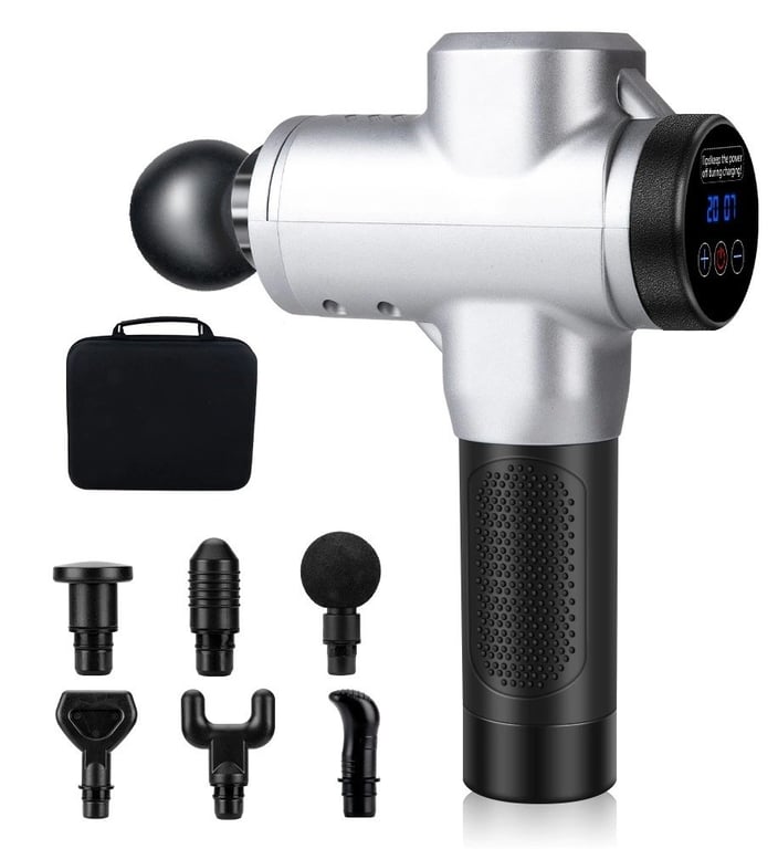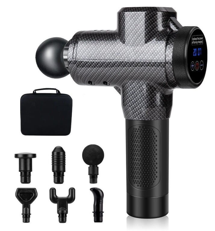 La pistola de masaje vibratoria es una herramienta que estimula la circulación sanguínea y le ayuda a relajar los músculos tensos. La pistola se controla mediante una pantalla táctil LCD. Las vibraciones se pueden ajustar en 20 velocidades diferentes. El paquete también incluye 6 cabezales intercambiables para diferentes tipos de masaje. La pistola de masaje es una herramienta adecuada para deportistas recreativos y profesionales, y casi indispensable para fisioterapeutas.