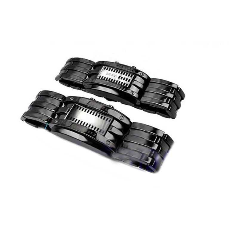 Reloj binario para hombres con diseño exclusivo. Reloj LED original que se convertirá en una parte indispensable de tu imagen. La columna izquierda de diodos representa el número de horas. La parte superior de la columna derecha de diodos muestra las decenas de minutos, mientras que la parte inferior muestra las unidades de minutos.