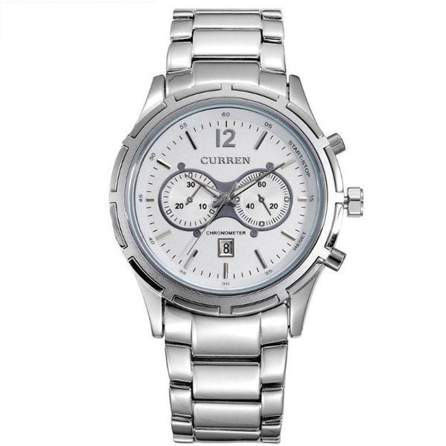 Reloj elegante para hombre con un diseño lujoso que deslumbrará a cualquier caballero. El centro de la esfera se presenta con un elegante ocho acostado. Completa tu atuendo con un gran accesorio para verdaderos hombres. Está disponible en varias opciones de color. El reloj muestra, además de la hora, la fecha y es resistente al agua en lluvias ligeras.