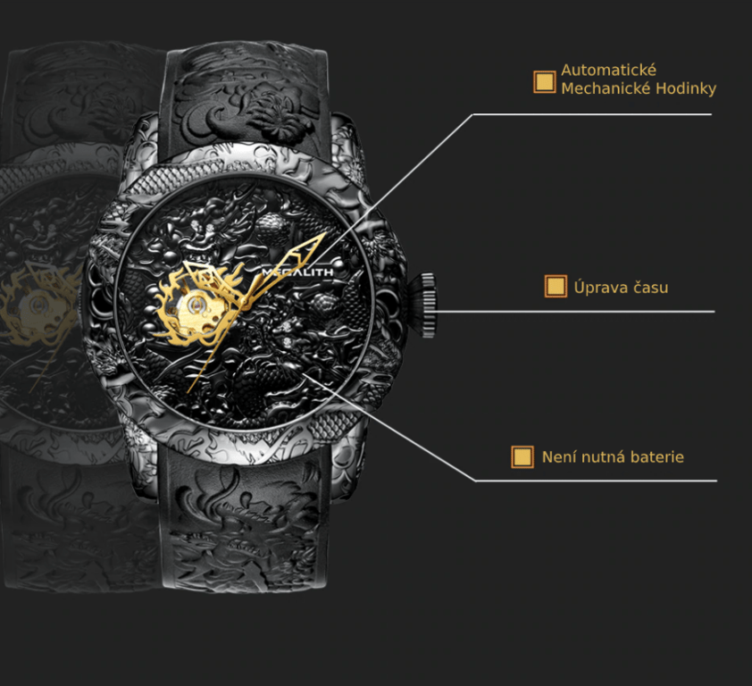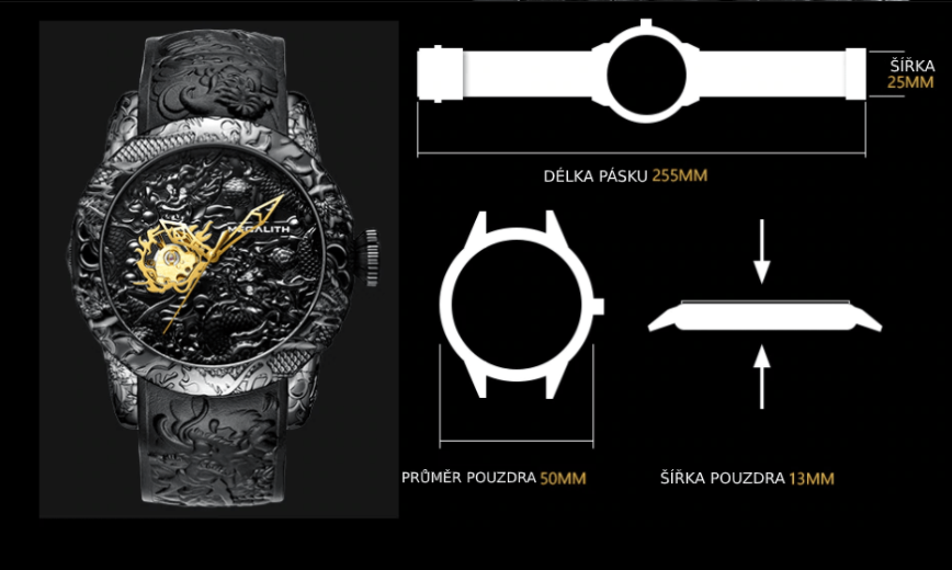 Reloj de lujo para hombres Megalith Black Dragon