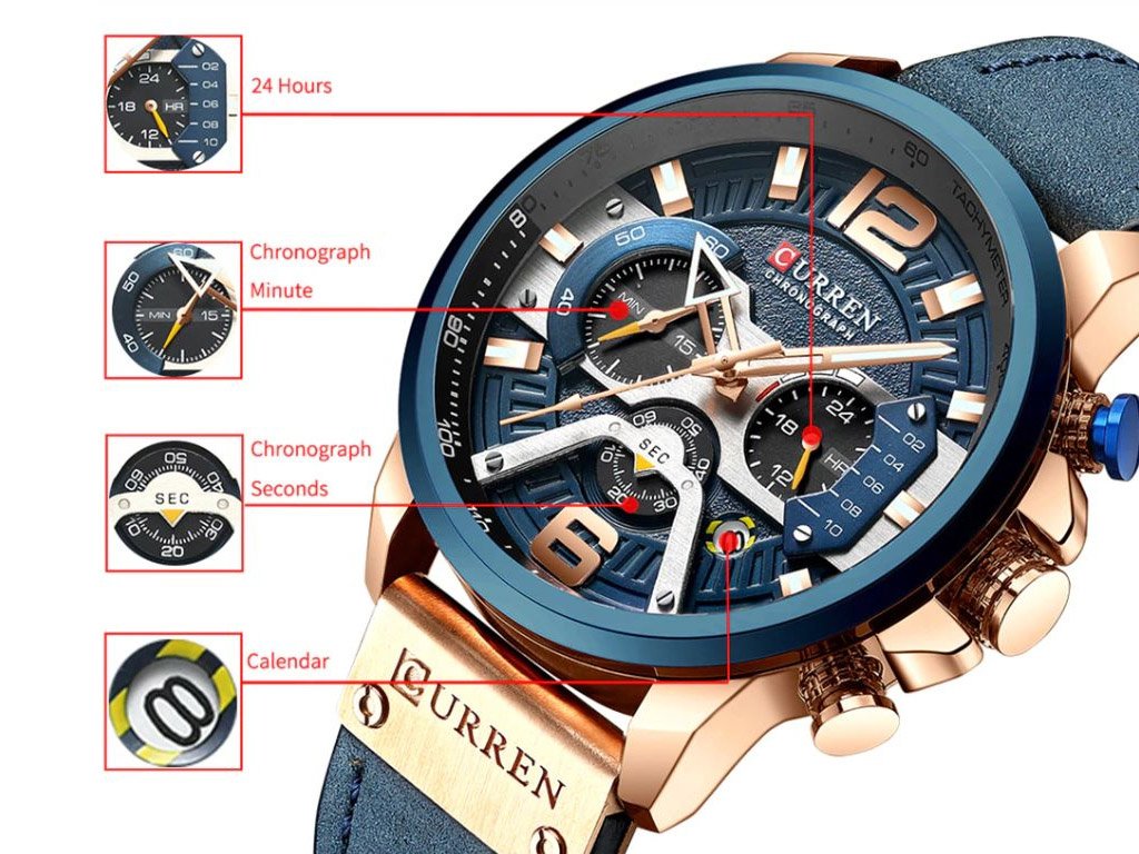 ¿Te gusta la elegancia clásica o el estilo deportivo? ¡El lujoso reloj de pulsera CURREN con correa de cuero para hombres seguramente te encantará! De muy alta calidad y en varias opciones de color. Multifuncional y todos los indicadores funcionan. Tienen fecha y cronógrafo.