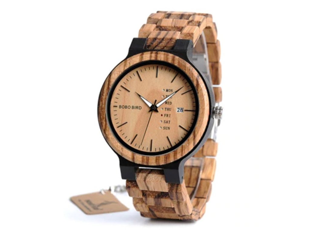 Relojes de madera de lujo de la marca Bobo Bird, que elevarán su estilo a una originalidad absoluta. Todos los relojes están fabricados con madera natural, por lo que la veta de la madera puede no coincidir completamente con la imagen del producto y son únicos en su apariencia.