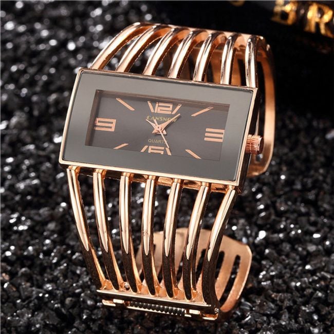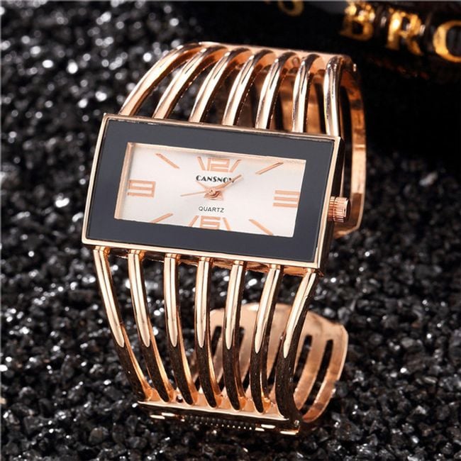 Los relojes de estilo femenino cuentan con una correa de acero resistente y una esfera rectangular. Están disponibles en 5 variantes de color.