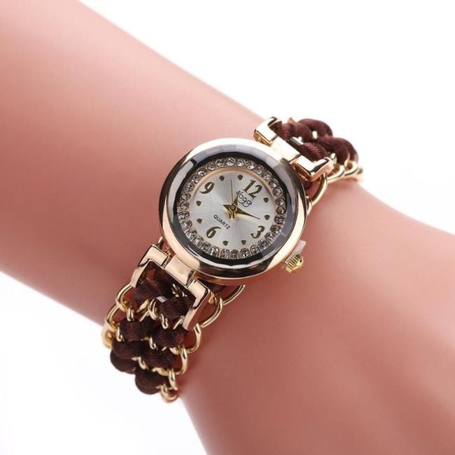Los relojes de pulsera para mujer cuentan con una elegante esfera adornada con piedras artificiales y una correa estilosa. Elige entre 10 variantes.