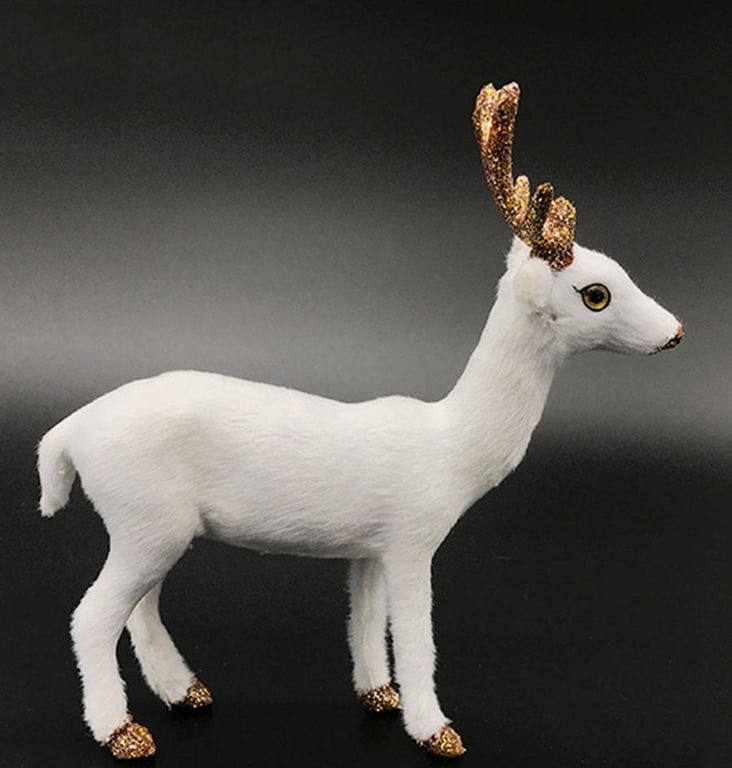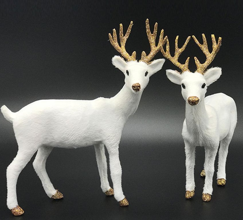 Hermoso reno de pie en color blanco con cuernos dorados.