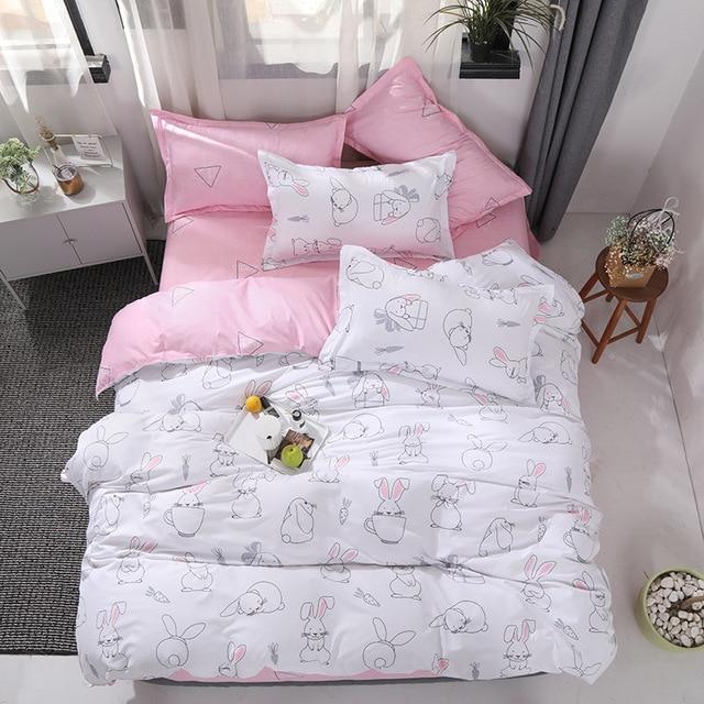Juego de cama con diseño de zanahoria, conejo y gato.